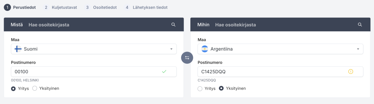 Shipitin postinumerohaku toimii seuraavalla tavalla Argentiinaan:
