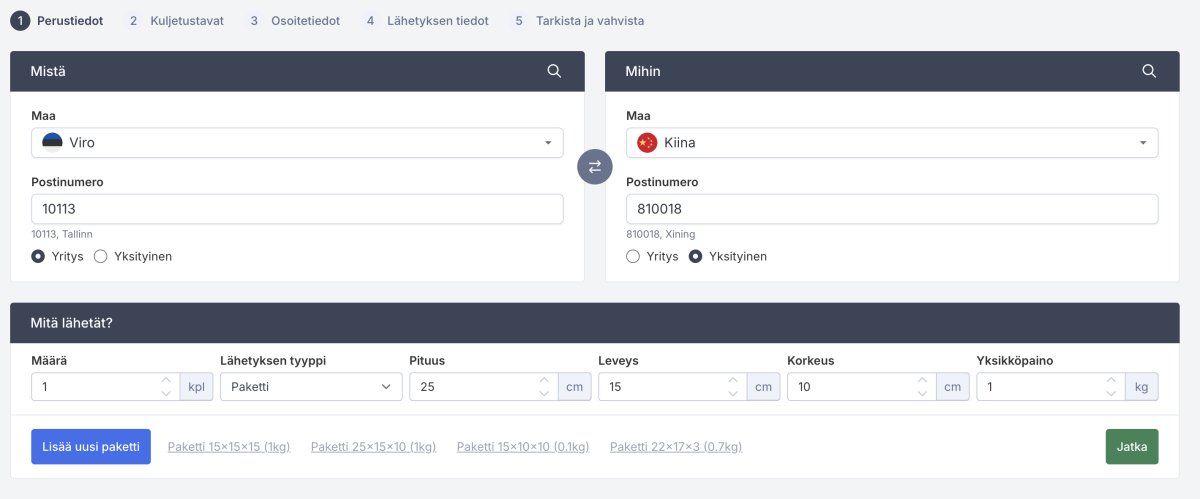 Seuraavat kuljetuspalvelut ovat käytössäsi lähettäessäsi pakettia Kiinaan: